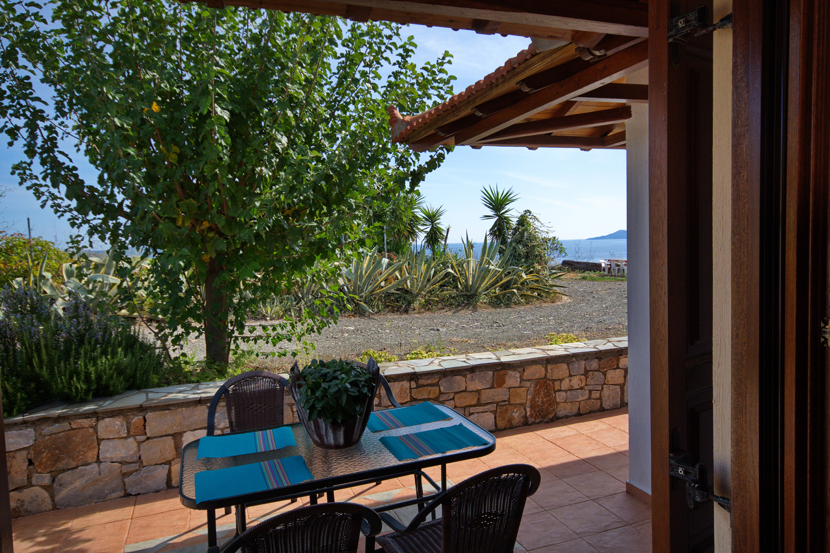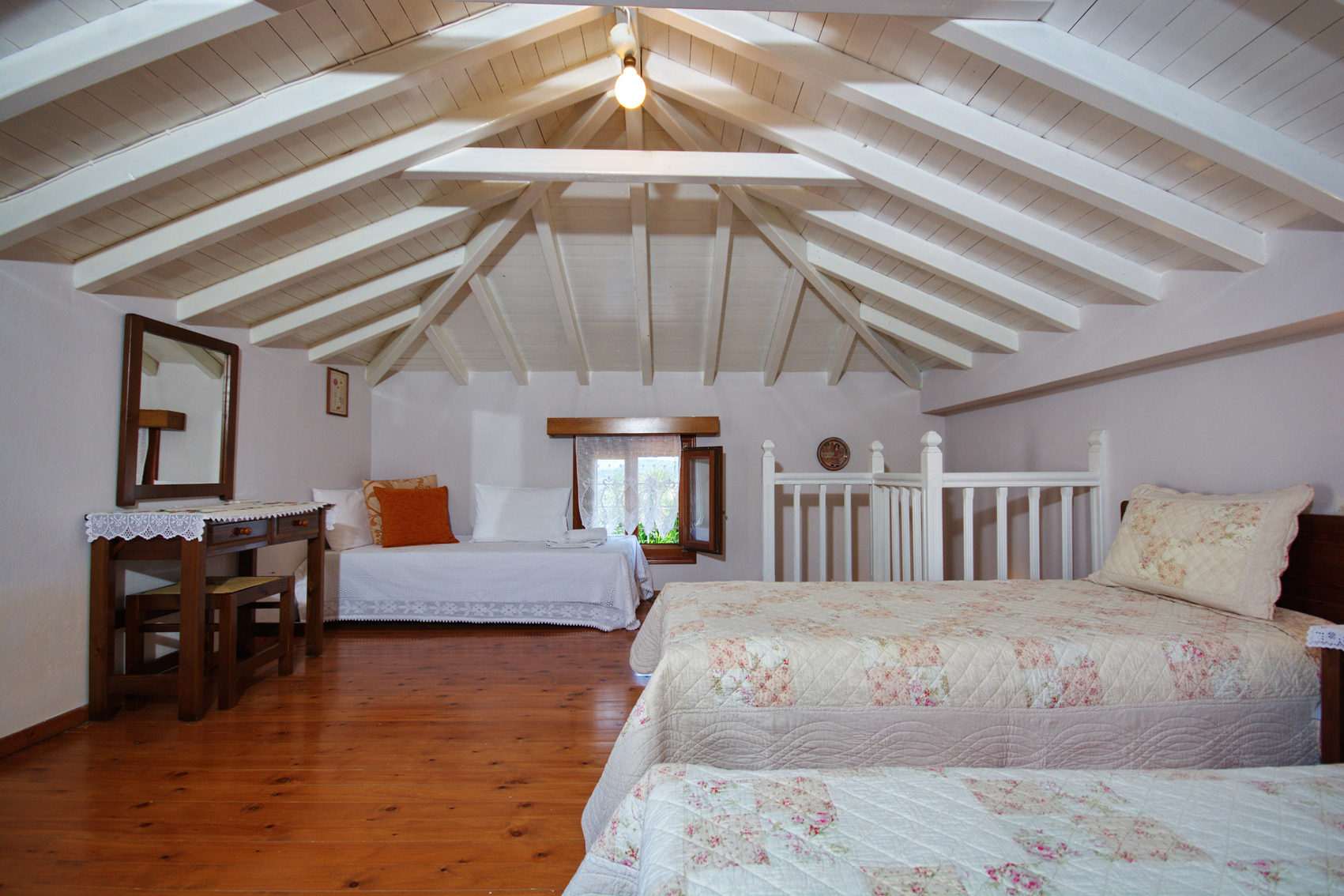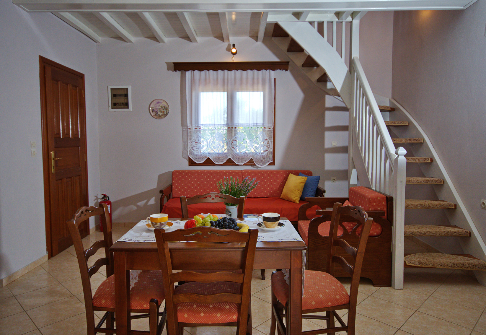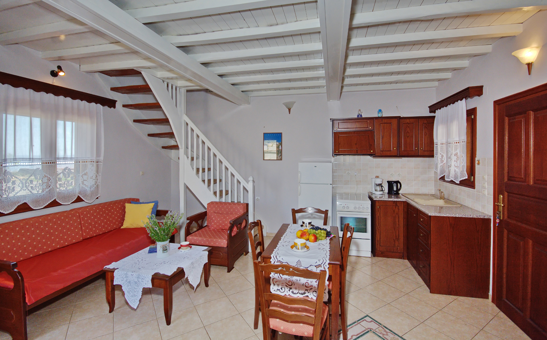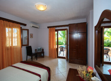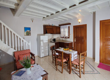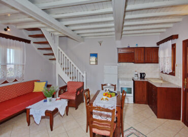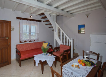 Large triple rooms are located on the first floor and have an awesome Aegean sea view, large windows and a lot of space inside. You are also able to upgrade your room to an upper floor. The rooms on the second floor come with a balcony and 2 comfortable chairs for your disposal.